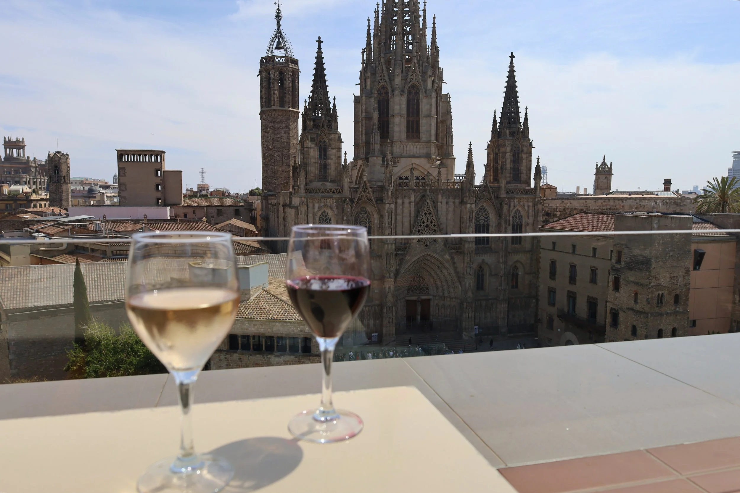 Wine with a view at L’Atic Rooftop Bar in Barcelona.